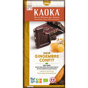 Tablette de chocolat noir 66% Gingembre confit - Bio - Fair trade - Kaoka - 180g